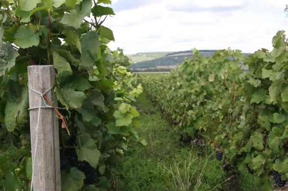 Vingårdar med miljömärkning HVE3 odlar gräs mellan vinraderna för den biologiska mångfalden och näringen till jorden. Bilden är från vår vingård Champagne Mathelin.